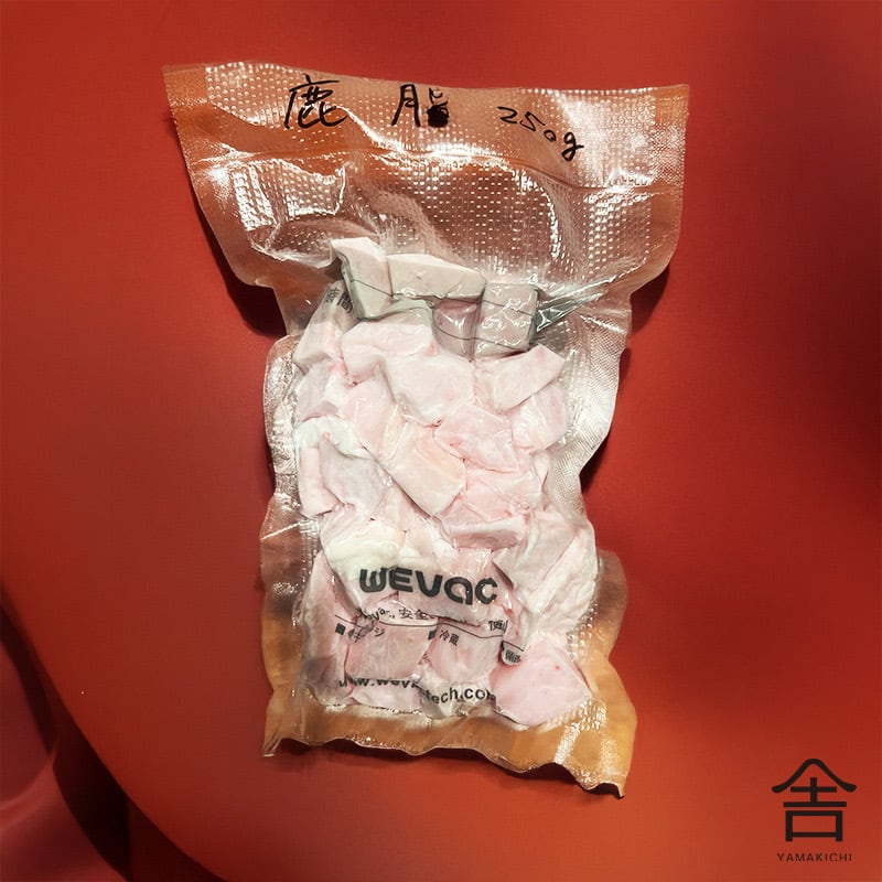 鹿脂を精製した鹿油(ろくし)は、高い保湿力と浸透力を持つ天然オイルで、肌の乾燥、ひび割れ、あかぎれのケアに最適です。人の皮脂に似た成分(特にオレイン酸やパルミチン酸)を豊富に含み、肌荒れを柔らかくしてバリア機能をサポートし、健康な肌への再生を促すため、スキンケアやヘアケアの為の石鹸などに加工してご利用できます。秋~初冬までしか採取できなく破棄されてしまうのが現状です。